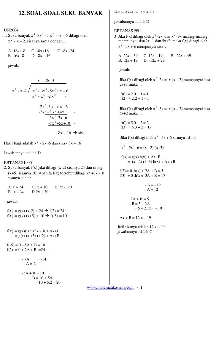 Contoh soal dan pembahasan tentang teorema sisa. Contoh soal dan pembahasan tentang suku banyak. Jikalau anda dapat mengerjakan soal-soal ini artinya anda paling tidak sudah.