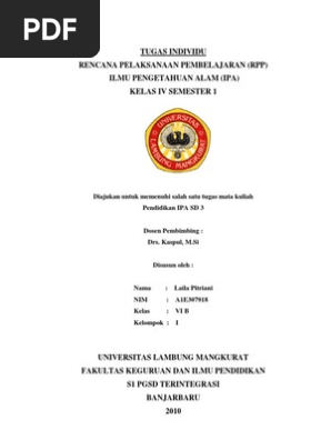 Rpp Ipa Sifat Dan Wujud Benda Kelas Iv Semester I